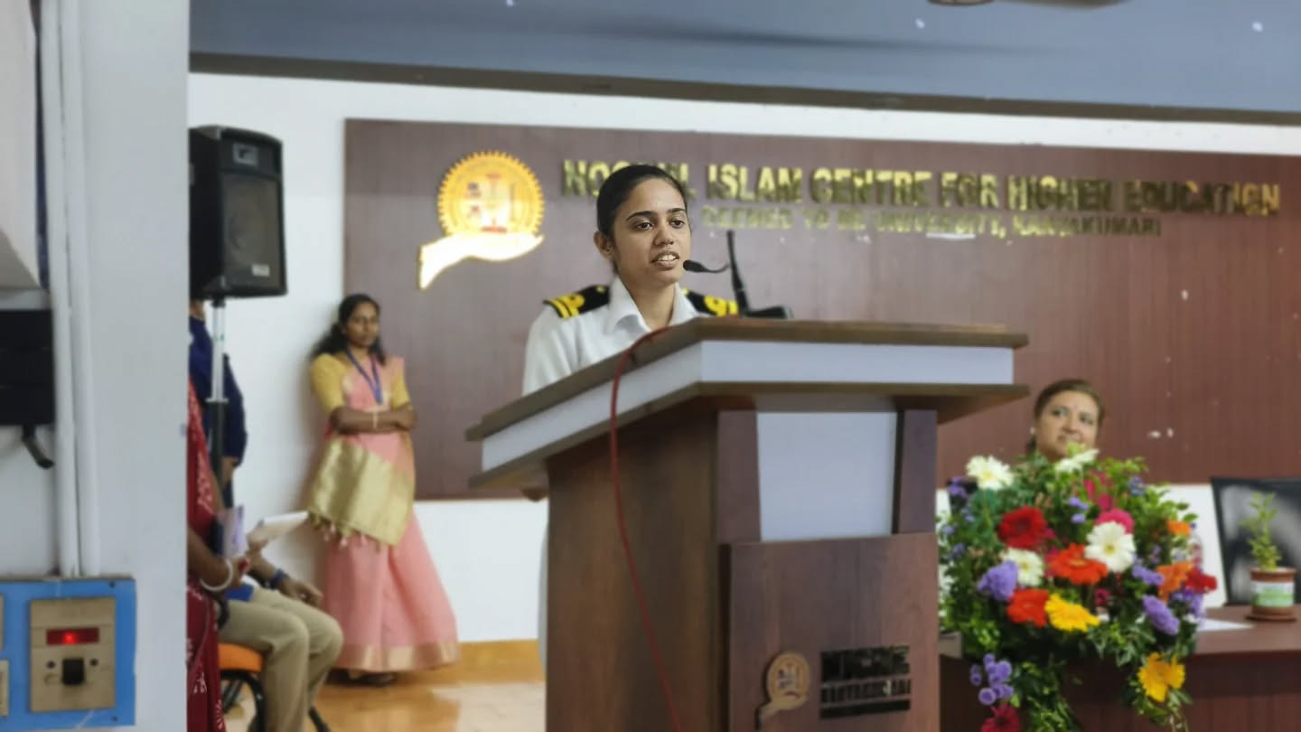The Department of Aerospace Engineering at Noorul Islam Centre for Higher Education (NICHE), Kumaracoil, had the honour of welcoming back our esteemed alumna, Lieutenant Lekshmi K Ravi, currently serving at the Warship Design Bureau, Naval Headquarters, Indian Navy, New Delhi.